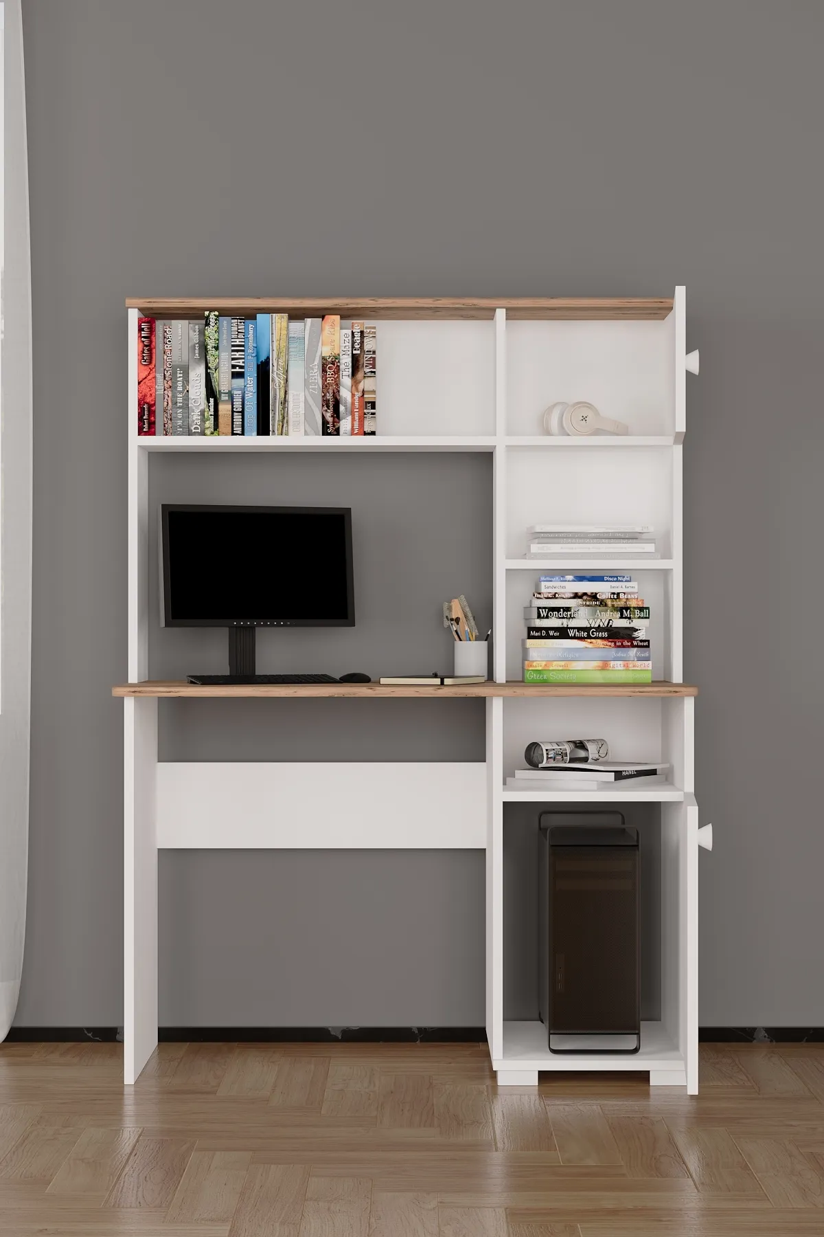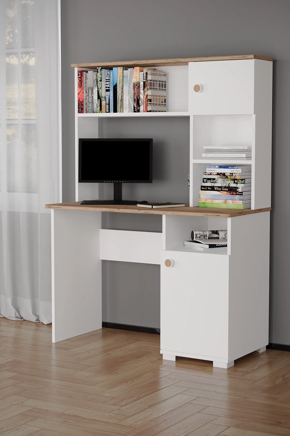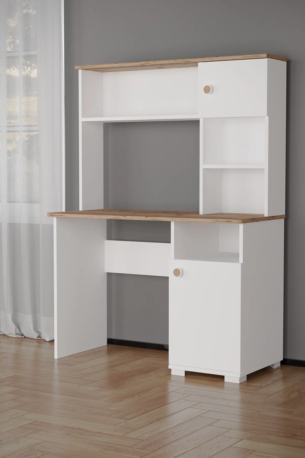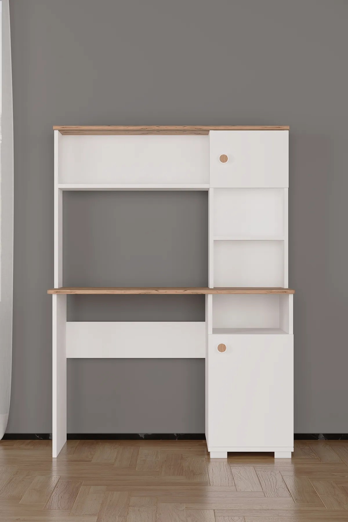 שולחן עבודה פונקציונלי בצבע לבן עם עץ