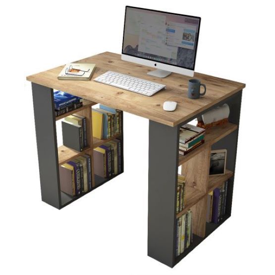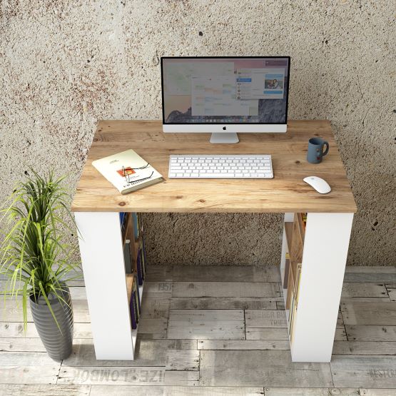 שולחן עבודה מעוצב לבית ולמשרד, עם שילוב חכם של שולחן וספרייה צדית לאחסון נוח ומסודר. מתאים לעבודה עם מחשב נייד או נייח, ומשלב עיצוב מודרני ופונקציונליות מקסימלית. פתרון מושלם ללימודים, עבודה וארגון החפצים שלכם בצורה קלה ונגישה.