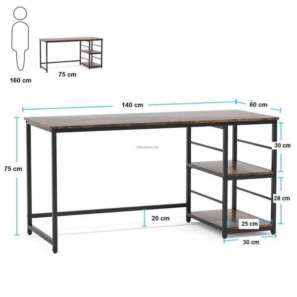שולחן עבודה עם מדפי צד דגם קייסי מבית Twins Design