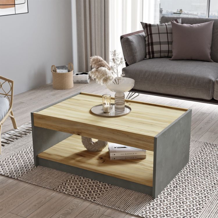 שולחן סלון בצבע עץ בשילוב גוון אבן-בטון מדגם Manu