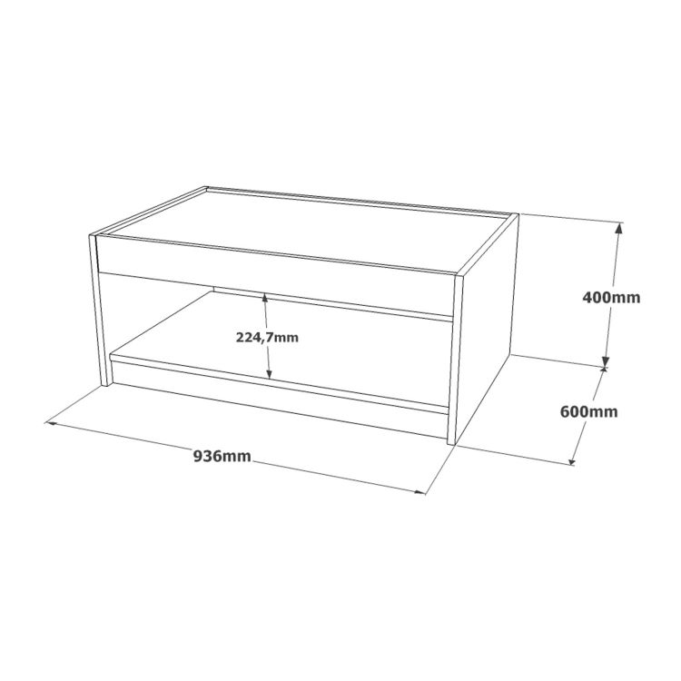 שולחן קפה עם מדף תחתון להנחת ספרים, חפצים וכדומה
