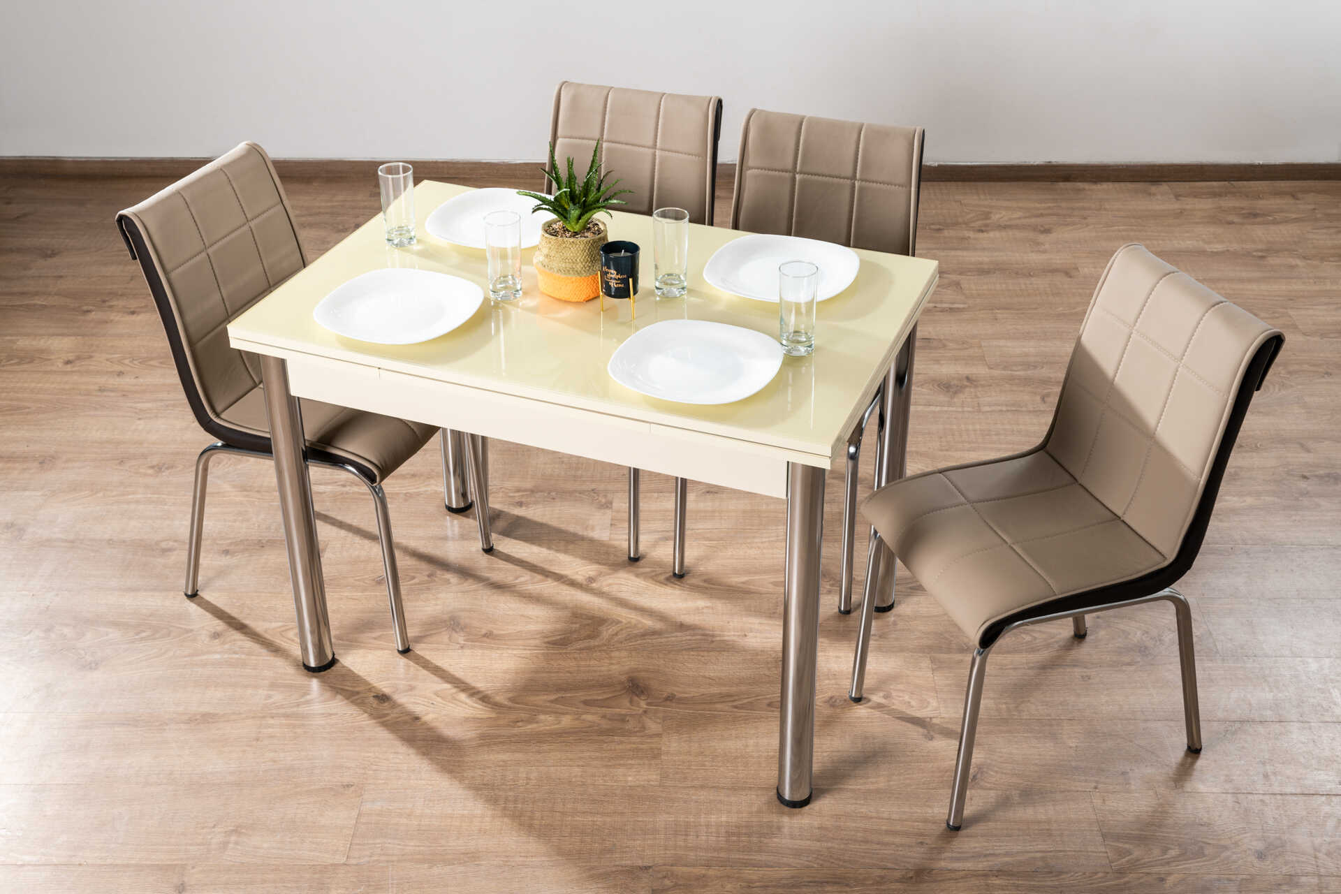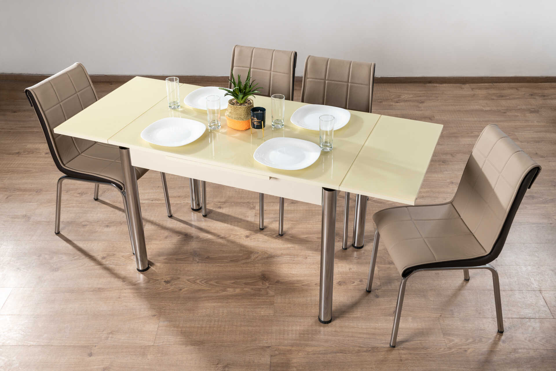 פינת אוכל מזכוכית נפתחת עד 170 ס’מ בעיצוב מרהיב