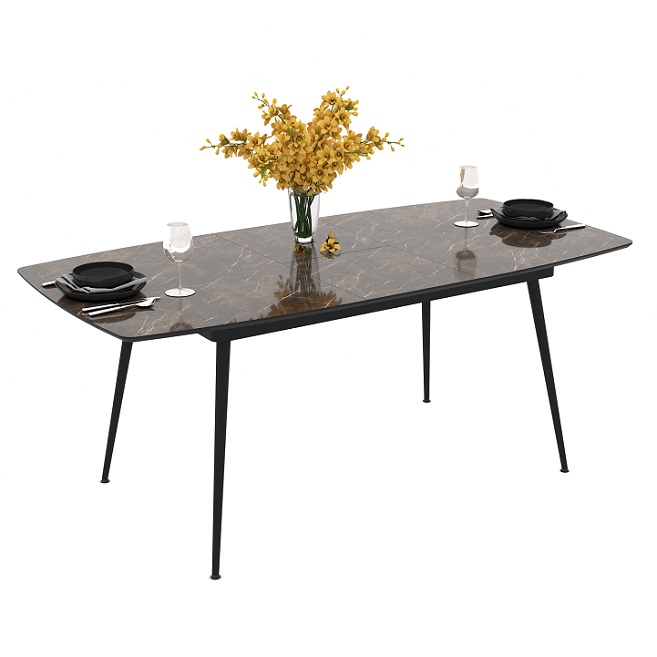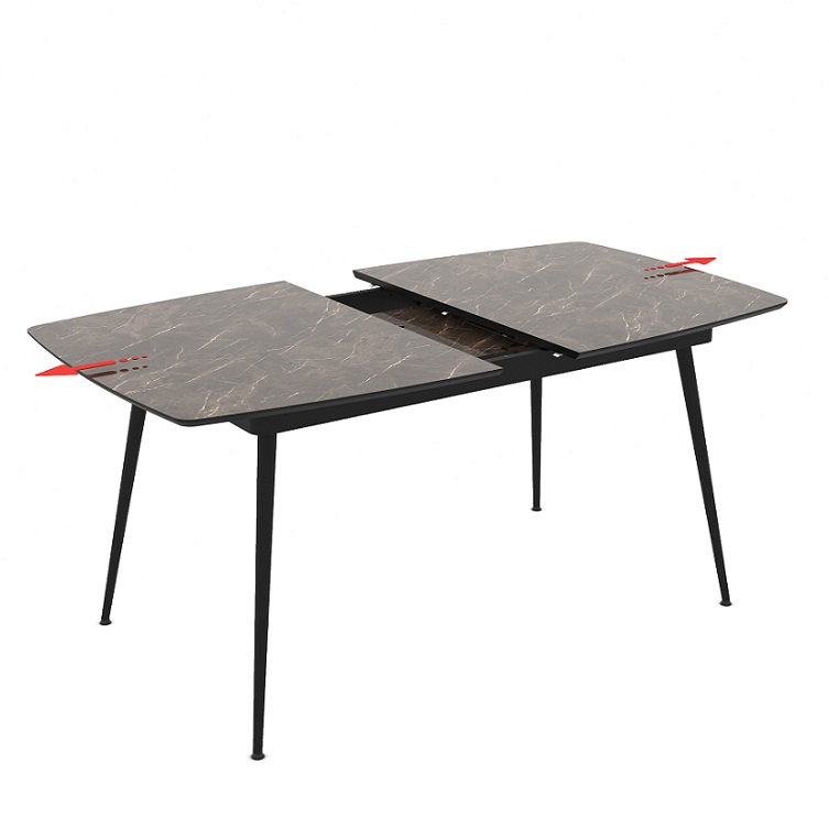 עיצוב וסגנון נפגשים שולחן פינת אוכל מלבני נפתח דמוי שיש בשילוב שחור
