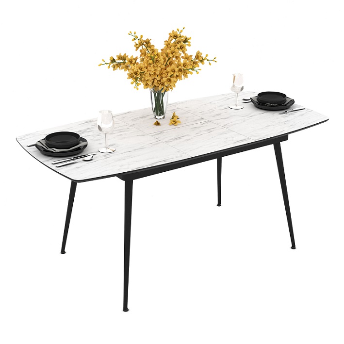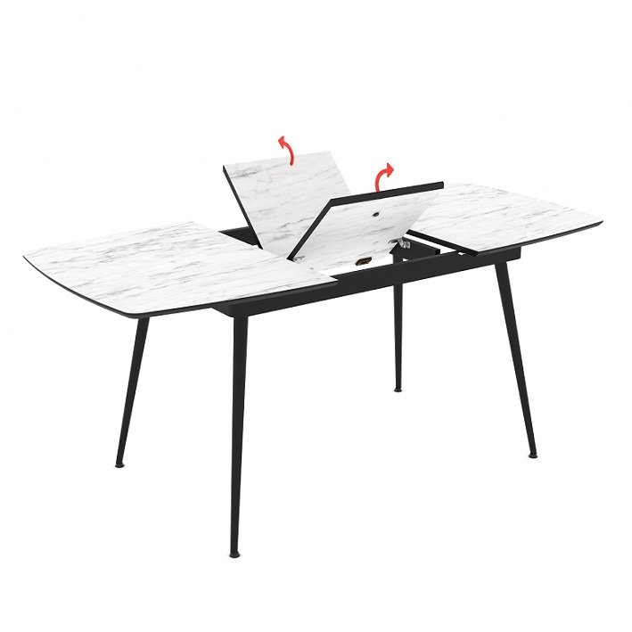 עיצוב וסגנון נפגשים שולחן פינת אוכל מלבני נפתח דמוי שיש בשילוב לבן