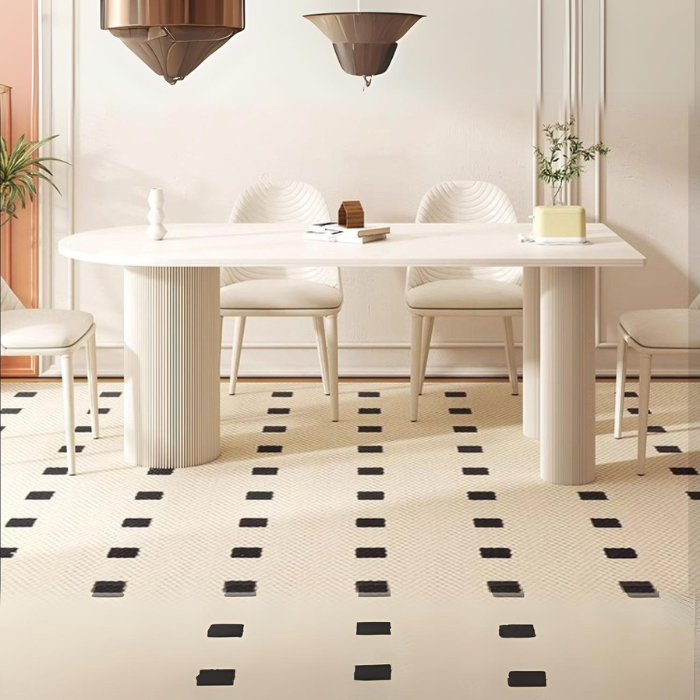 השולחן המלבני עשוי מפלטת אבן צפחה איכותית, עם רגלי פלדת פחמן, להבטחת יציבות ועמידות לאורך זמן.