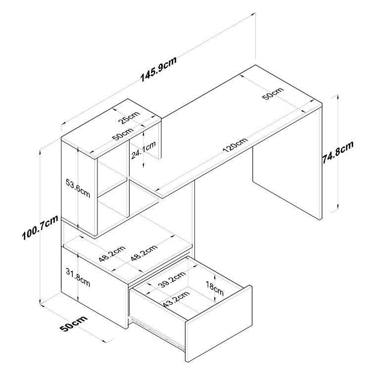 רוחב השולחן כולל הספריה 145.9 ס”מ
