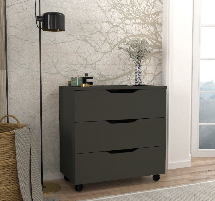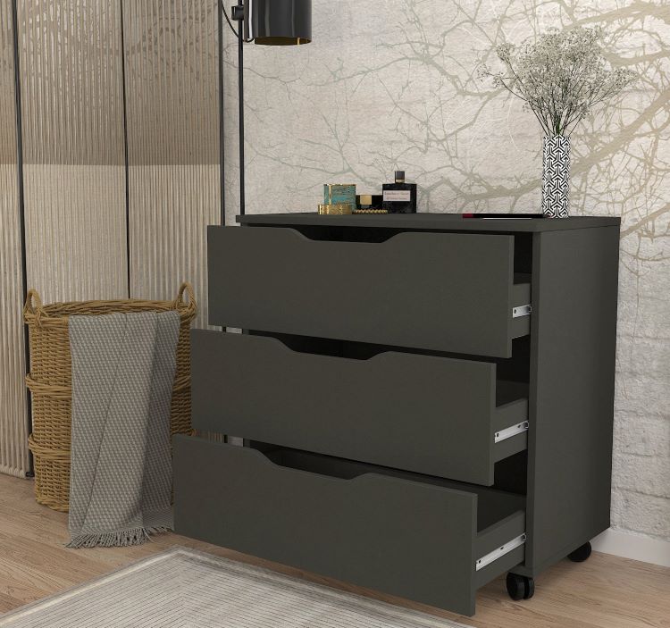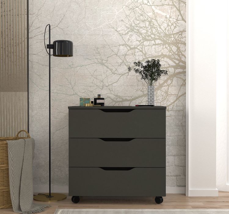 שידת לילה מעוצבת עם גלגלים בגוון אפור כהה