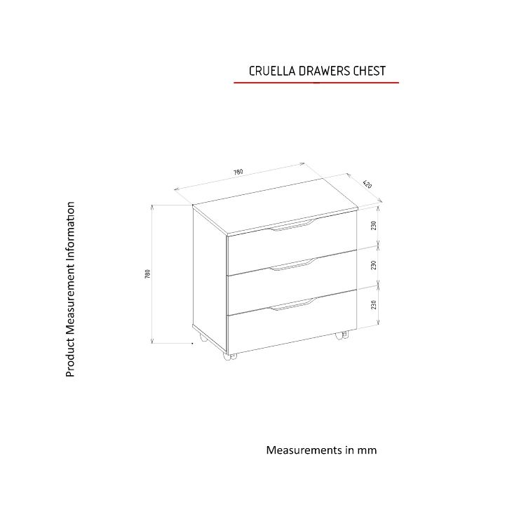 השידה מגיעה עם שלוש מגירות מרווחות, המספקות מקום אחסון נוסף לפריטים שונים.
