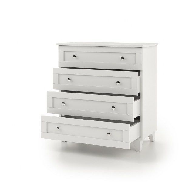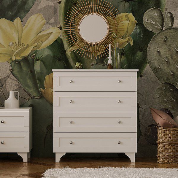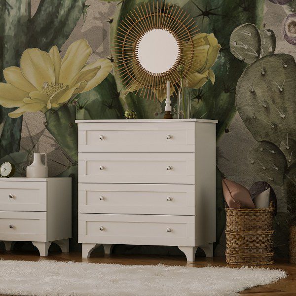 שידת אחסון 4 מגירות בקווים נקיים וצבע ניטרלי לבן, המפיחים חיים בכל חלל.