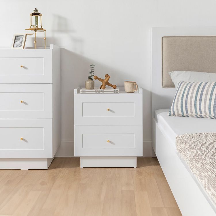 שידת לילה קומפקטית ואלגנטית בעיצוב לבן נקי, עם שתי מגירות נוחות לאחסון יומיומי. עיצוב מינימליסטי שמשתלב נפלא בכל חדר שינה – זוגי, נוער או אורחים. ידיות קטנות בגוון זהב מוסיפות טאץ’ עדין של יוקרה, והמבנה הסגור בבסיס מאפשר מראה מסודר וניקיון קל.
