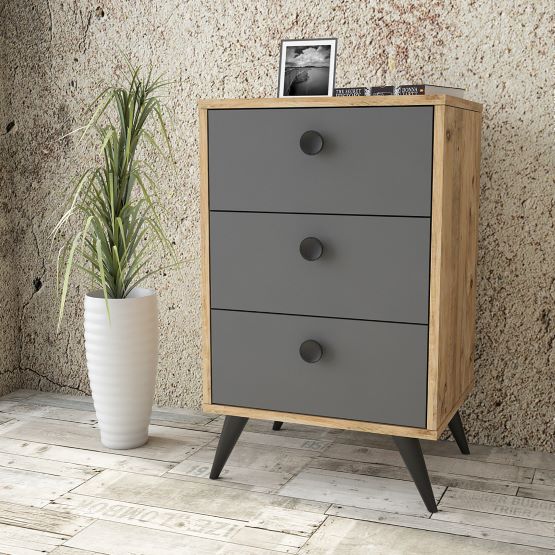 שידת לילה /קומודה בעלת 3 מגירות לאחסון מרבי