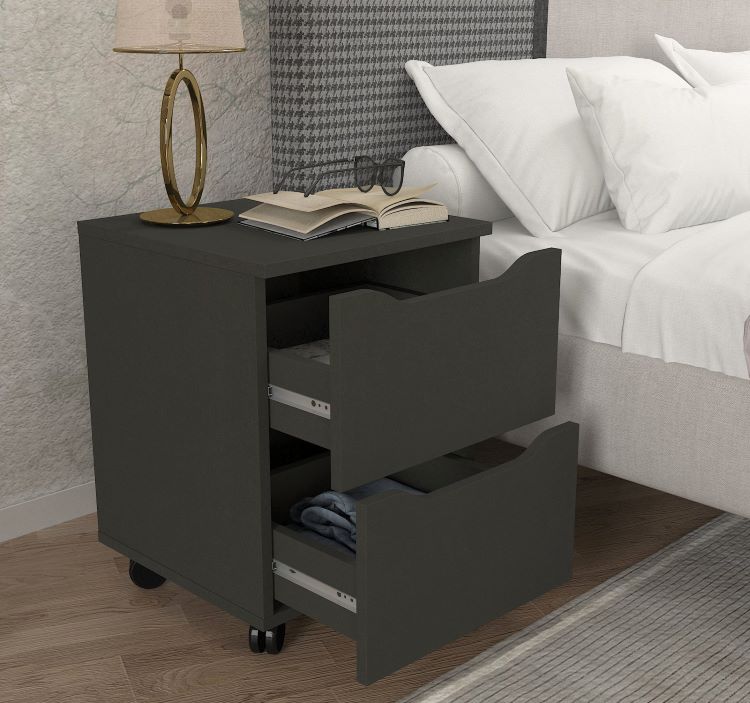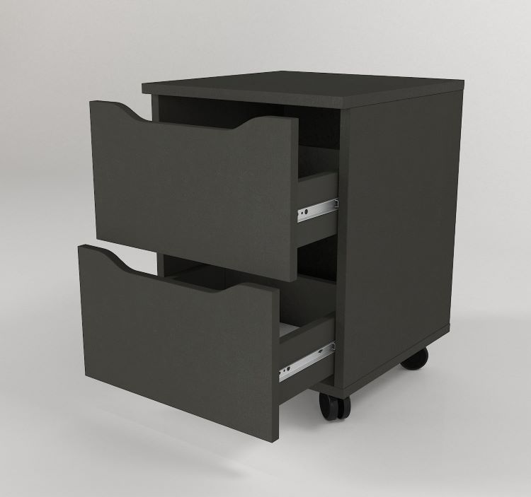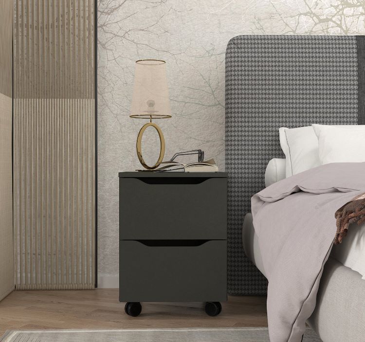 השידה בגוון אפור כהה עשויה מחומר איכותי ויציב, ומגיעה בגימור אנתרסייט מרהיב.