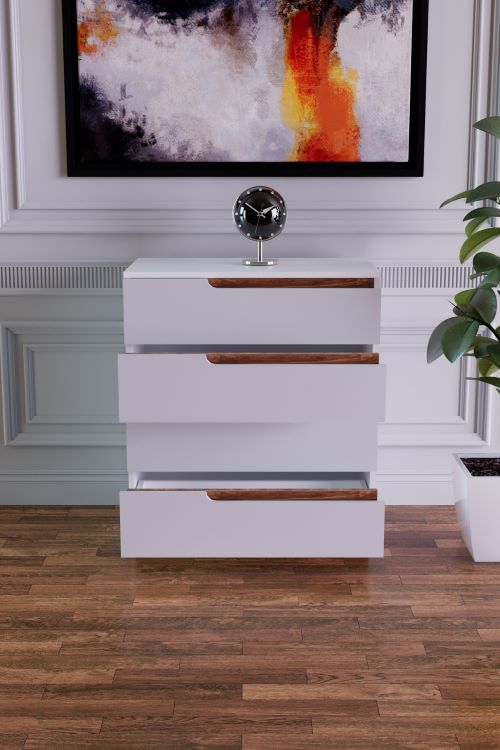 שידת אחסון/קומודה מעוצבת בצבע לבן בשילוב חום