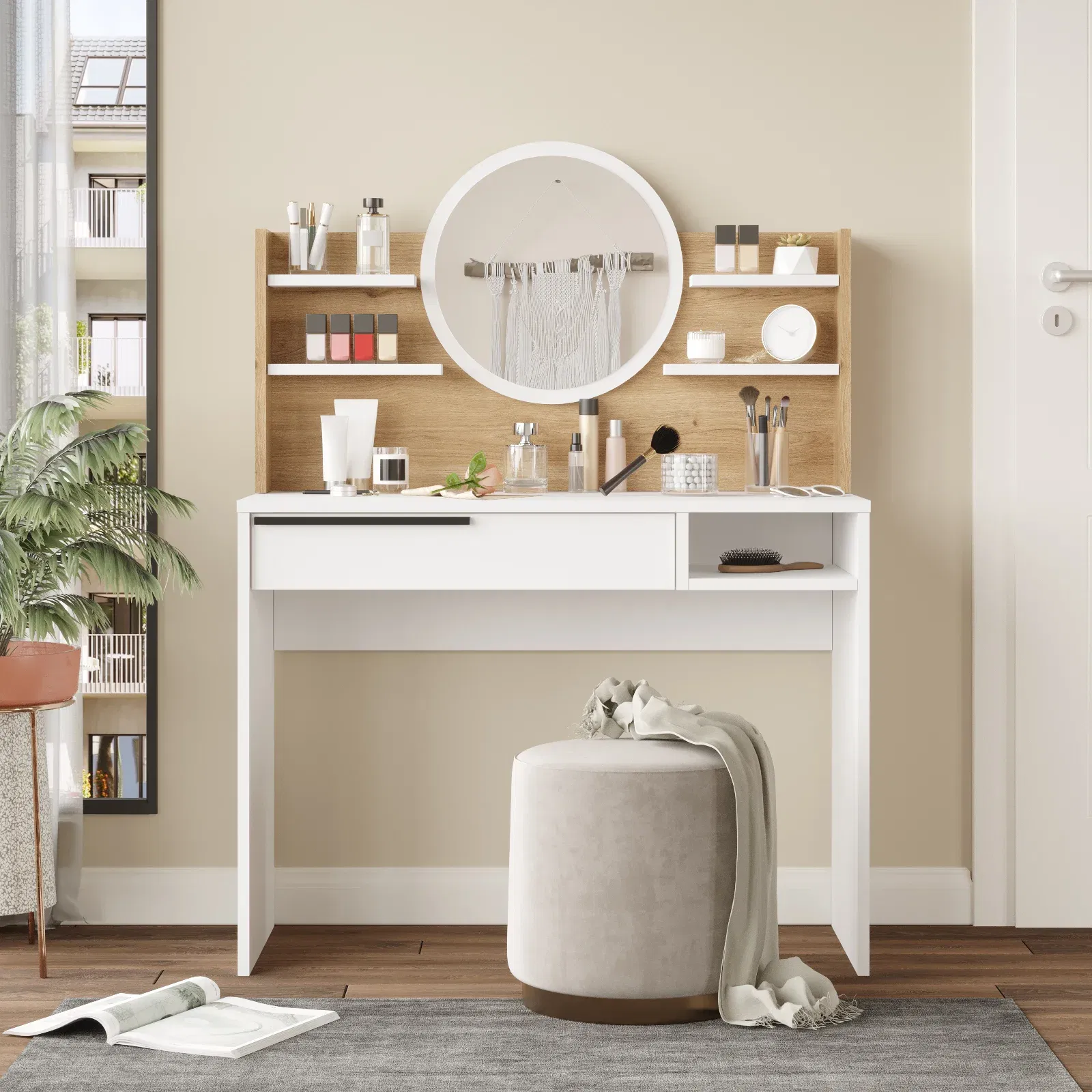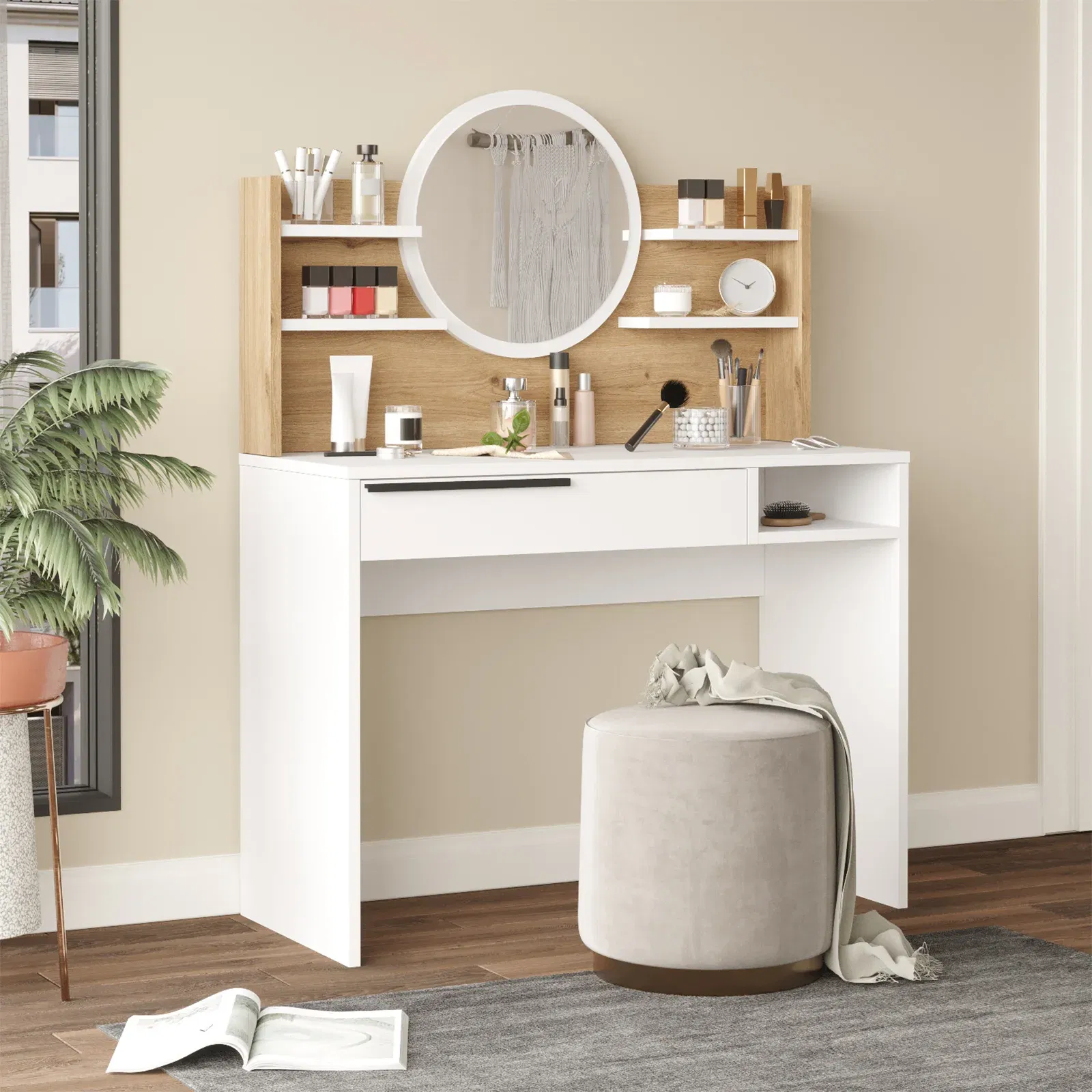שידת האיפור דגם הילנוי מבית Twins Design תהפוך כל רגע של התארגנות לחוויה נעימה, מסודרת ומעוצבת. עם קווים מודרניים ואלגנטיים, מראה גדולה ונוחה, ומגירה מרווחת במיוחד – תוכלי לשמור על כל מוצרי האיפור והטיפוח שלך בהישג יד ובסדר מופתי. השידה זמינה במגוון צבעים לבחירה, כך שתוכלי להתאים אותה בדיוק לסגנון האישי ולעיצוב החדר שלך. החומרים האיכותיים והגימור המוקפד מבטיחים שימוש יומיומי נוח, עמיד ואסתטי לאורך זמן.