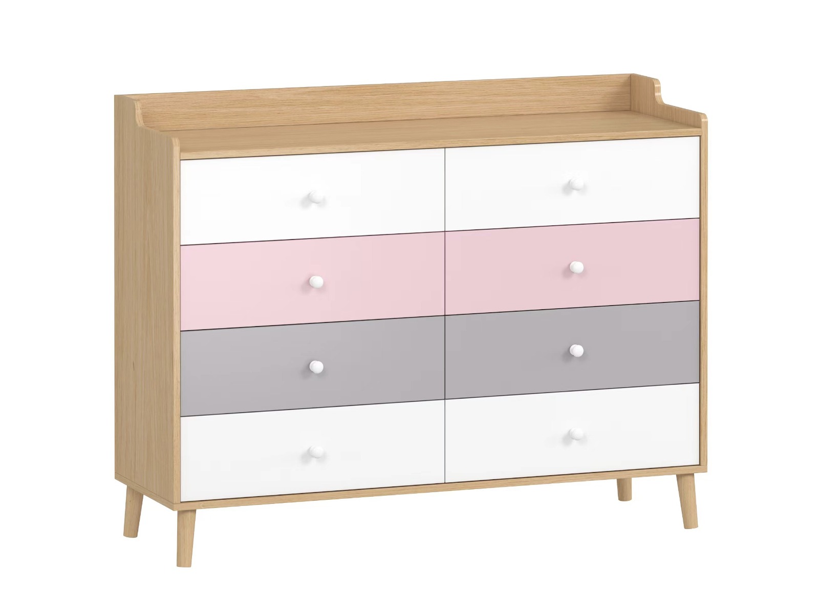 העיצוב הנקי והאלגנטי של השידה משלים כל עיצוב חדר ילדים והמגירות המרווחות מבטיחות שלכל דבר יש את מקומו.