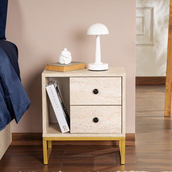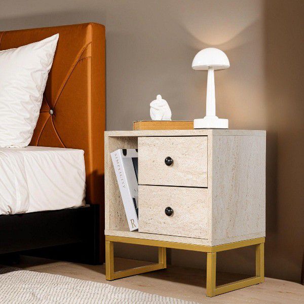 הכירו את שידת הלילה הלבנה עם רגלי מתכת, הבחירה המושלמת לשדרוג חדר השינה שלכם.