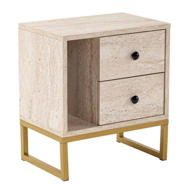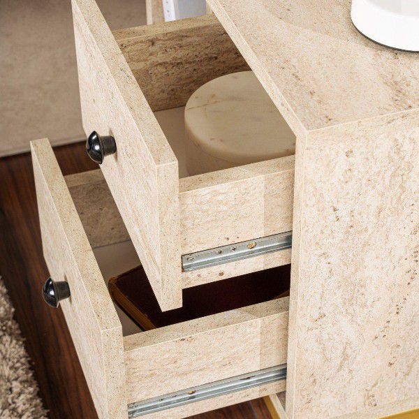 שידת לילה בצבע אבן בשילוב רגלי מתכת דגם גליל מבית TWINS DESIGN