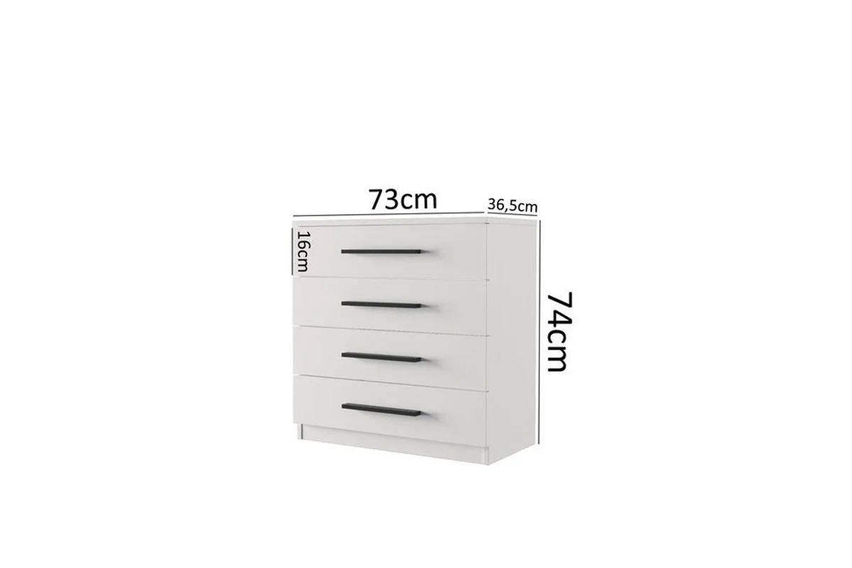 ✔ 4 מגירות מרווחות – כל מגירה בגובה של 16 ס”מ, אידיאליות לאחסון פריטים יומיומיים