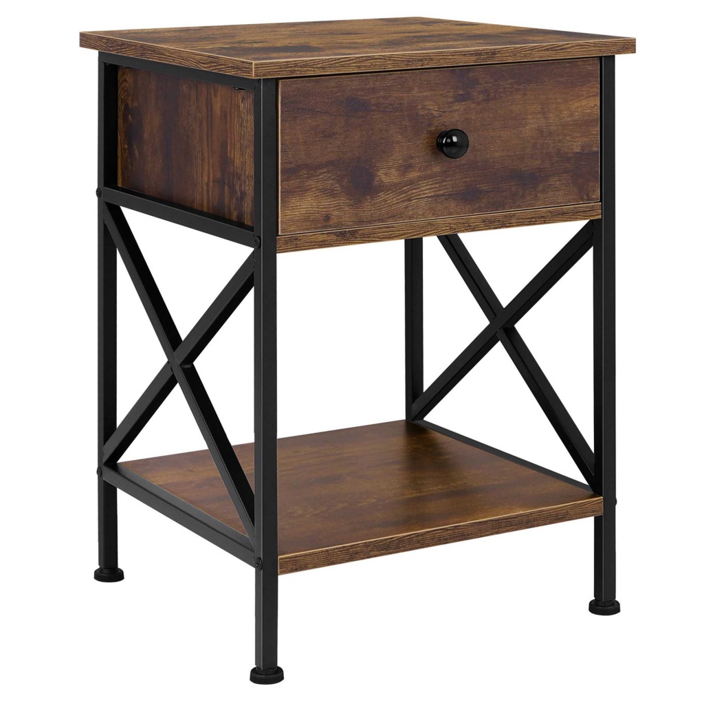 שידת לילה אחסון מעץ טבעי תעשייתי בעיצוב מודרני