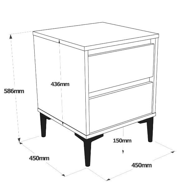 עם 2 מגירות אחסון ורגליים גבוהות מעץ (15 ס”מ) לניקוי קל, השידה עמידה עשויה סיבית בציפוי מלמין ומתאימה לכל חדר שינה.