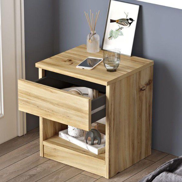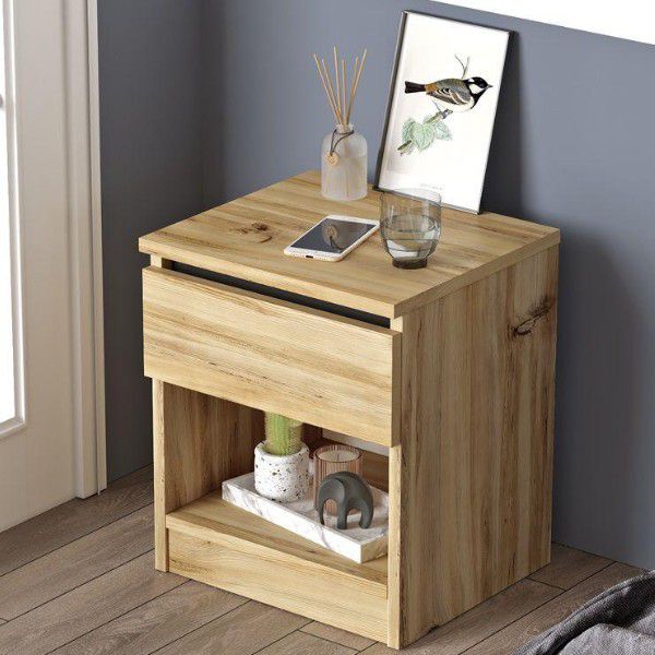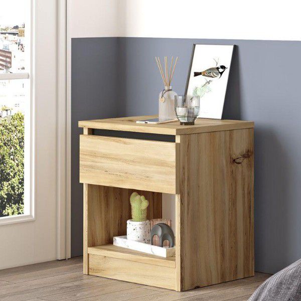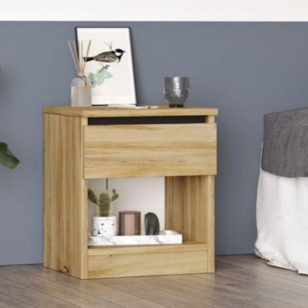 שדרגו את חדר השינה עם שידת לילה דגם Gia, בעיצוב נקי וגוון עץ טבעי שמוסיף חמימות וסטייל. השידה כוללת מגירה לאחסון פריטים שונים ומדף תחתון להנחת אובייקטים וחפצים בצורה מסודרת ונגישה.
