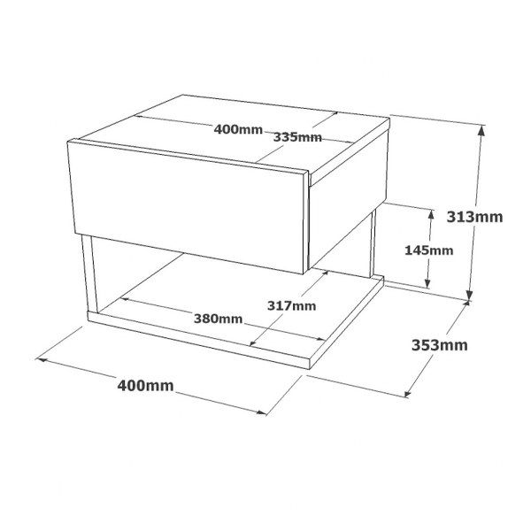 שידת לילה מעוצבת בסגנון מודרני, פרקטית ואלגנטית, המשלבת עיצוב מרחף וחסכון במקום.
